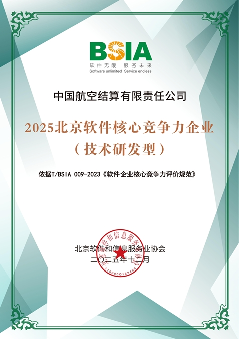 【结算公司 于秋洋 图/文报道】近日,北京软件和信息服务业协会第十一届会员代表大会第三次会议暨2025企业服务年会在北京举行。会上权威发布的《2025北京软件企业核心竞争力评价报告》揭晓了年度榜单,中国航空结算有限责任公司(以下简称“结算公司”)凭借在技术研发领域的卓越表现,荣获“2025年北京软件核心竞争力企业(技术研发型)”称号。这是对中国航信在民航科技领域核心竞争力的高度认可,彰显了其行业领先的技术研发实力与持续创新能力。