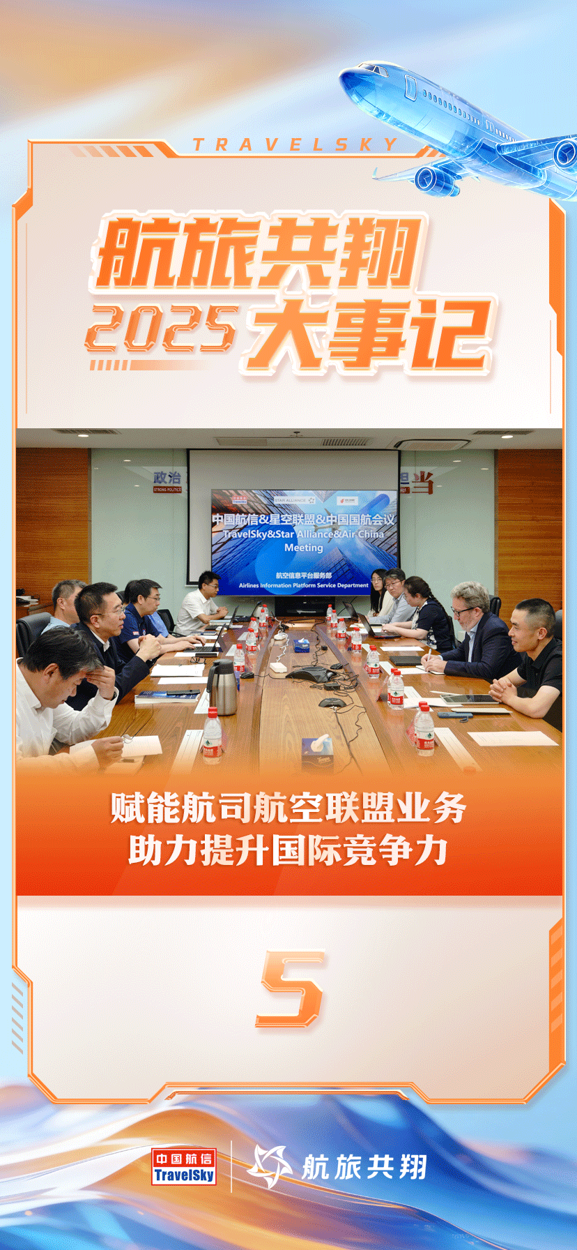 赋能航司航空联盟业务 助力提升国际竞争力 全年持续支持托管航司航空联盟业务,完成多项联盟关键任务。2025年5月,星空联盟、国航、中国航信三方齐聚,开展高层重要会晤,探索驱动民航领域的新思路。未来,中国航信将持续赋能航司航空联盟业务,增强国内航空公司在国际联盟中的话语权,共同塑造全球航空业的新格局。