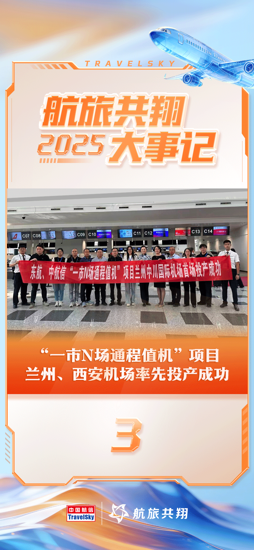 “一市N场通程值机”项目 兰州、西安机场率先投产成功 2025年9月,中国航信与中国东航联合打造的“一市N场通程值机”项目,在兰州机场首场投产成功,并于11月在西安机场完成投产。该服务通过重构航旅生态链核心流程,实现跨机场中转旅客“一次值机、行李直挂、一票到底”的技术与服务模式双重创新,填补了国内民航跨场中转服务行业空白,为提升我国民航产业链韧性、构建开放共享的产业链生态圈提供了实践参考,本项目荣获2025央企产业链创新发展优秀案例。