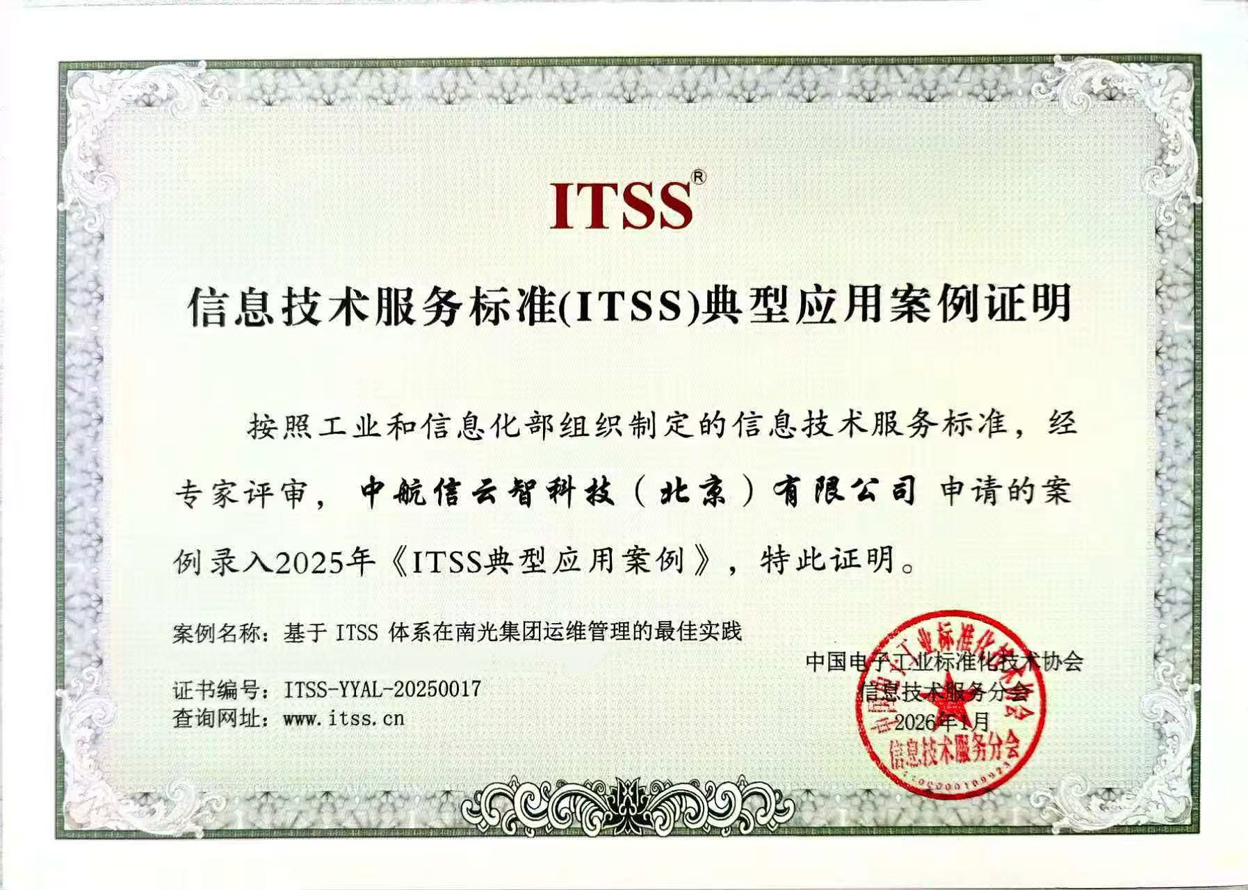 作为我国信息技术服务领域的权威标准体系,ITSS旨在通过典型案例评选推广符合国家标准的创新服务实践。本次遴选聚焦技术创新、标准落地及示范价值三大维度,评审严谨规范。中航信云智科技报送的两大案例从众多参选案例中脱颖而出,充分印证了其在运维标准化、智能化转型方面的技术实力与行业引领力。 中航信云智科技深耕“航信鸿鹄”智能运维、“航信云”云计算及行业AI解决方案,已获得ITSS信息技术服务标准运行维护能力成熟度二级认证。针对南光集团、国药数科在运维体系标准化、智能化、监控全覆盖等方面的核心建设需求,中航信云智科技以ITSS标准为引领,搭建了完善的运维管理体系与一体化智能监控平台。通过实施统一化运维管理模式,实现了从分散管理向集中治理、从被动应急处置向主动预判防控的转型升级,全面提升了企业运维质量、运行效率、监控覆盖范围与全流程运转效能,有力保障核心业务系统安全、稳定、高效运行。同时,还为同类企业的数字化转型提供了可复制、可推广的标准化方案。 此次入选标志着中航信云智科技的专业能力获国家级认可。未来,中航信云智科技将持续以ITSS标准为引领,深化行业场景创新,打造更多高质量、可推广的数字化解决方案,为数字经济与实体经济深度融合注入技术动能。 知识多一点 中航信云智科技知多少? 全称中航信云智科技(北京)有限公司,是中国航信旗下专业技术服务公司,主营业务涵盖系统架构咨询、智能运维等信息技术服务,致力于为政企客户提供智能运维安全及行业数字化解决方案,以专业化服务推动产业数字化升级与行业高质量发展。 |