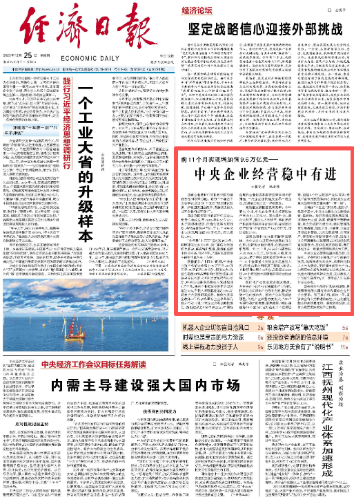 “新征程上,中央企业要充分认识肩负的职责使命,更好服务党和国家工作大局,服务经济社会高质量发展,服务保障和改善民生,勇担社会责任,为中国式现代化建设贡献更大力量。”习近平总书记近日对中央企业工作作出重要指示,充分肯定了党的十八大以来中央企业取得的新业绩,对中央企业提出了明确要求和殷切希望,为做好中央企业工作进一步指明了方向。 中央企业负责人会议12月22日至23日在京召开。会上传达了习近平总书记重要指示。连日来,新闻媒体、专家学者、研究机构等高度关注,报道解读中央企业改革发展成果、任务、机遇,期待中央企业对社会经济的新贡献、新利好。 习近平总书记重要指示 为做好中央企业工作指明方向 “党的十八大以来,中央企业认真贯彻党中央决策部署,积极服务国家战略,在国民经济中发挥了骨干和支柱作用。”习近平总书记深刻指出。 人民日报用一组数据,亮出央企之重:“十四五”以来,中央企业资产总额已超过90万亿元,在战略性新兴产业领域累计投资8.6万亿元;累计上交税费超10万亿元,向社保基金划转国有股权1.2万亿元;承担了约80%的原油、70%的天然气、60%的电力供应。 央视新闻快评:国资央企作为国民经济的“压舱石”,科技创新的“国家队”,产业发展的“领头羊”,维护安全的“主力军”。 新征程上,央企何为? 习近平总书记强调了一个关键词——职责使命:“中央企业要充分认识肩负的职责使命,更好服务党和国家工作大局,服务经济社会高质量发展,服务保障和改善民生,勇担社会责任,为中国式现代化建设贡献更大力量。” 贡献更大力量,殷殷嘱托,饱含期待。怎么干,习近平总书记为做好中央企业工作指明方向。 习近平总书记强调:“要聚焦主责主业,持续优化国有经济布局,切实增强核心功能、提升核心竞争力。” “要立足实体经济,强化关键核心技术攻关,推动科技创新和产业创新深度融合。” “要进一步深化改革,完善中国特色现代企业制度,健全公司治理结构,着力解决制约企业发展的深层次问题,努力建设世界一流企业。” “要把党的领导贯穿到改革发展各方面全过程,纵深推进全面从严治党,营造风清气正的政治生态。” 新华社记者采访了与会人员和广大中央企业干部职工,大家纷纷表示,在“十四五”即将收官、“十五五”新程待启的关键时点,习近平总书记的重要指示对中央企业提出了殷切希望和明确要求,为做好中央企业工作指明了方向,将认真学习领会、坚决贯彻落实,为以中国式现代化全面推进强国建设、民族复兴伟业贡献更大力量。 “十五五”开局之年怎么干 中央企业负责人会议释放重要信号 中央企业负责人会议总结了2025年和“十四五”时期工作成绩,研究提出“十五五”工作思路,部署2026年重点任务。会议释放出一系列关于中央企业未来发展方向、重点任务和战略取向的清晰信号。 央广网报道,面对复杂严峻的内外部环境,国资央企坚持稳中求进,2025年1—11月,中央企业实现增加值9.5万亿元,同比增长1.4%;营业收现率、营业收入利润率、年化净资产收益率均保持在合理水平。 会议强调,“全力以赴稳经营、提质效”是2026年的首要任务。据证券日报报道,国务院国资委党委书记、主任张玉卓分别从空间、质量、潜力这三个角度,为中央企业明确了发展要点: 一要以抢抓市场拓展发展空间。探索运用各种大数据模型和行业模型,精准捕捉潜在市场需求,创新提升商品和服务品质,培育壮大文旅、数字、健康等消费新场景,努力形成新的增长点。 二要以强化管理提高发展质量。坚持向内挖潜,做好全面预算管理,加强全员、全要素、全生命周期成本管控,加大应收款项、合同资产、存货和应付款项管控力度。加强上市公司质量和市值管理。 三要以有效投资积蓄发展潜力。围绕产业链强基补短、基础设施建设、能源资源保障、前瞻产业布局等重点领域,用好各类支持政策,靠前谋划实施一批重大项目和标志性工程,厚植可持续发展基础。 “从本次会议释放的信号来看,2026年中央企业在国民经济稳定运行中的重要性将进一步提升。”专家在接受证券日报记者采访时表示,2026年中央企业在消费端将致力于通过技术手段实现需求洞察的精准化与供给品质的高级化,在投资端则聚焦筑牢产业根基、抢占未来赛道与推动存量升级。 “1—11月,中央企业研发投入8901.6亿元,研发投入强度达到2.62%。”张玉卓在会上表示,2025年,国务院国资委持续加强政策供给,各中央企业以更大力度强化自主创新,在国家创新体系中的作用更加凸显,创新能力稳步提升。 科技日报记者从会上获悉,中央企业协同创新扩围提质。23个创新联合体新吸纳超过100家创新主体参与攻关,1000多个合作项目高质量推进。8家转制院所试点成立共性技术研究院,与67家龙头企业凝练共性技术任务。 在科技成果转化方面,中央企业科技成果应用拓展工程深入推进,首批项目应用自主科技成果超过2300项。134个中试验证平台面向全社会开放专业化服务291项。 新的一年,中央企业如何打好创新引领攻坚战?此次会议给出答案:坚持科技创新和产业创新融合发展,统筹推进技术攻关、成果转化和人才生态建设。 “深化原创技术策源地建设”“健全市场导向的科研组织管理体系”“培育壮大科技领军企业”……在加强原始创新和关键核
